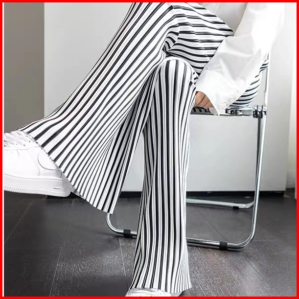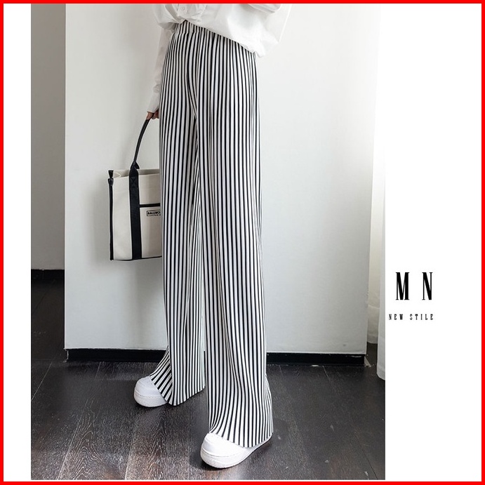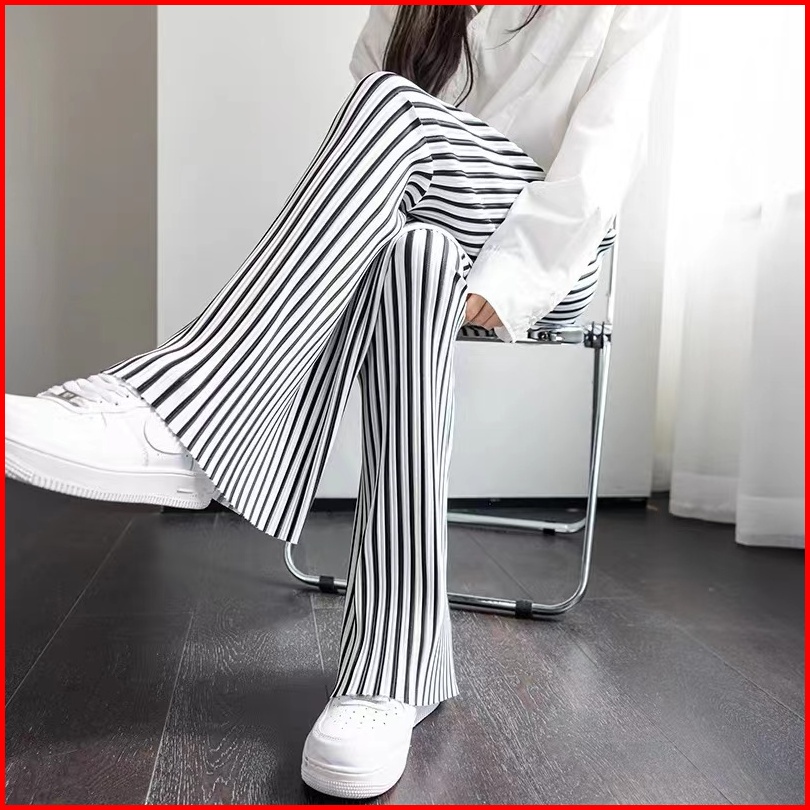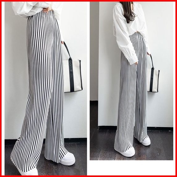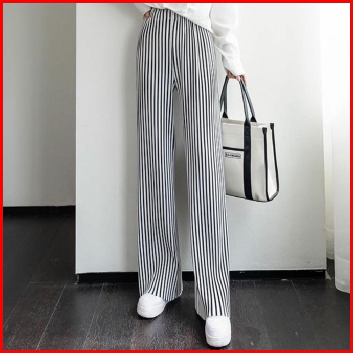 Premium99koutlet Celana Panjang Wanita Casual Motif Striped Highwaist Kulot All Size 7319 Culotte Pants Loose Full Lengt