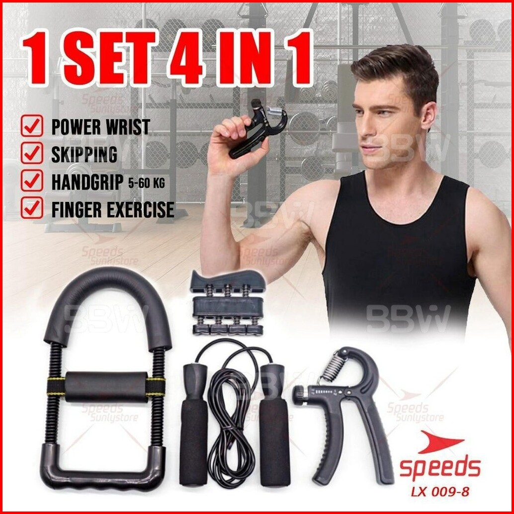 Speeds Alat Fitness Set Power Wrist Handgrip 4in1 Skipping Finger Exercise Alat Fitness Alat Gym Satu Set Hand Grip Set
