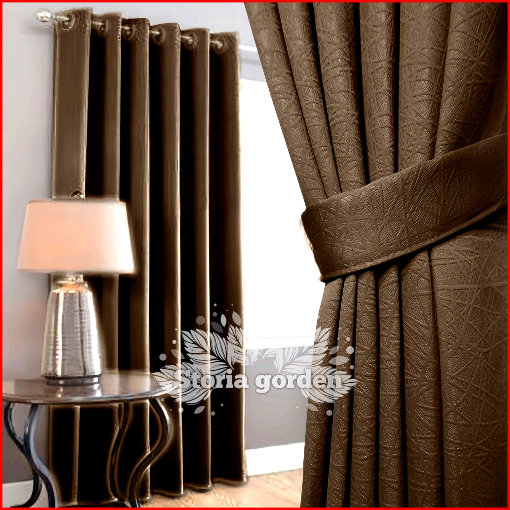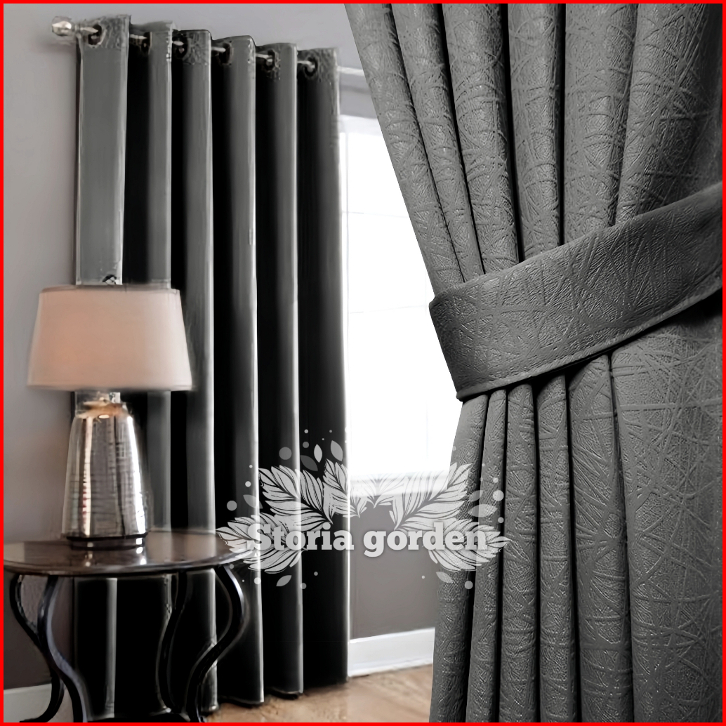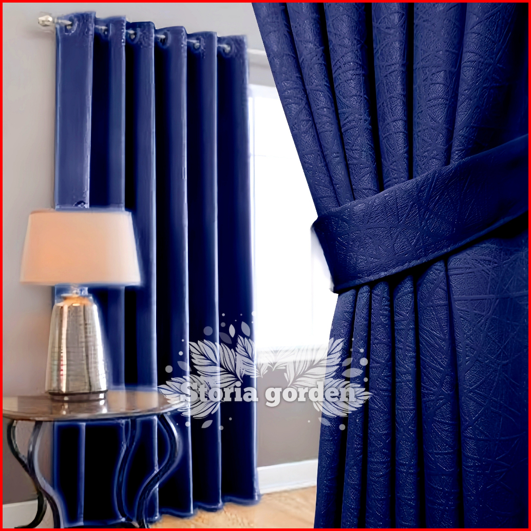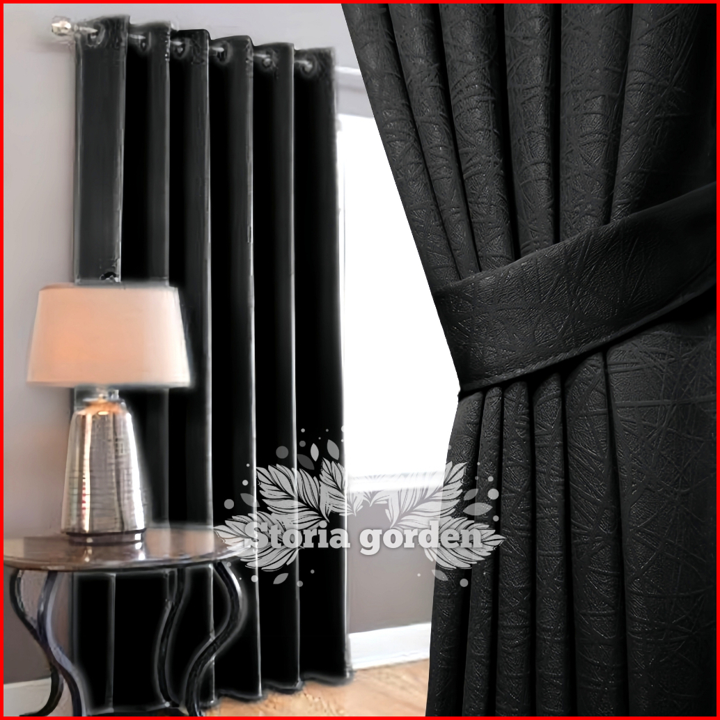 Gorden Blackout Polos Jendela Minimalis Pintu Tinggi Hordeng 12 Lubang Ring 6 Gelombang Warna Hitam