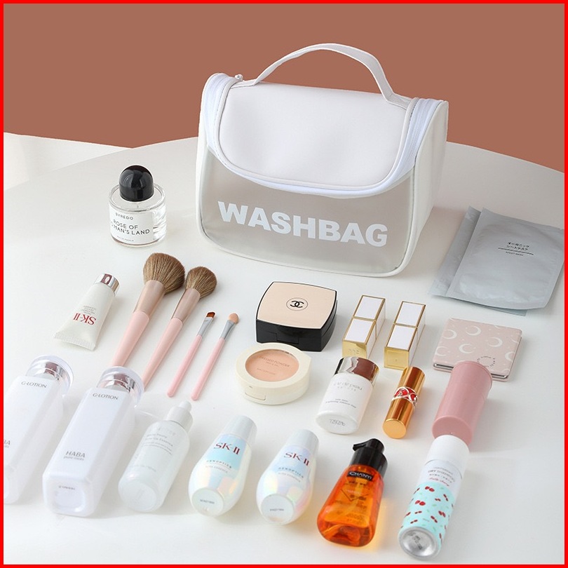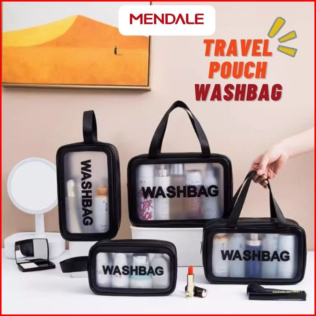 Mendale Pouch Kosmetik Transparan Tulisan Washbag Tas Travel Make Up Bag Organizer Waterproof - Pwb