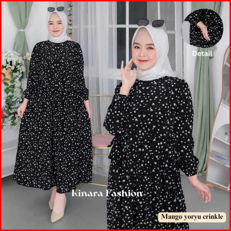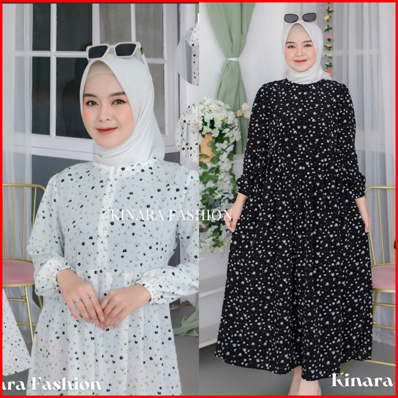 Aurora Dress Busui Crinkle Motif Bunga Maxi Midi