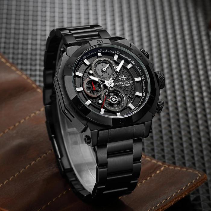 Jam Tangan Pria Evans Jayden 9590 Rantai Stainless Steel Chronograph Kaca Sapphire Water