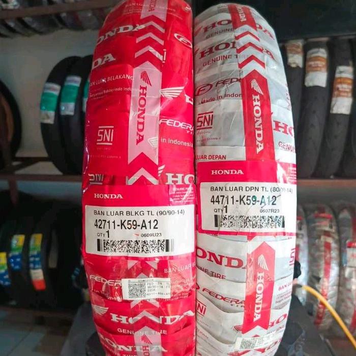 Ban luar 1 set Honda FEDERAL ukuran 80/90-14 dan 90/90-14 Tubeless original