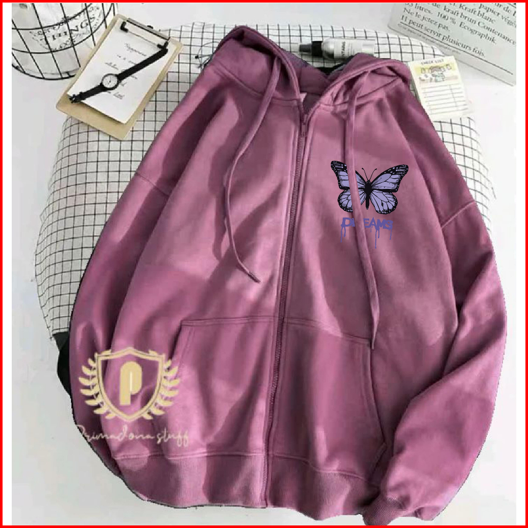 Butterfly Jacket Simpel Dream Zipper Hoodie Motif Terbaru Kupu Kupu Aesthetic Viral Trendy Cewek Cowok