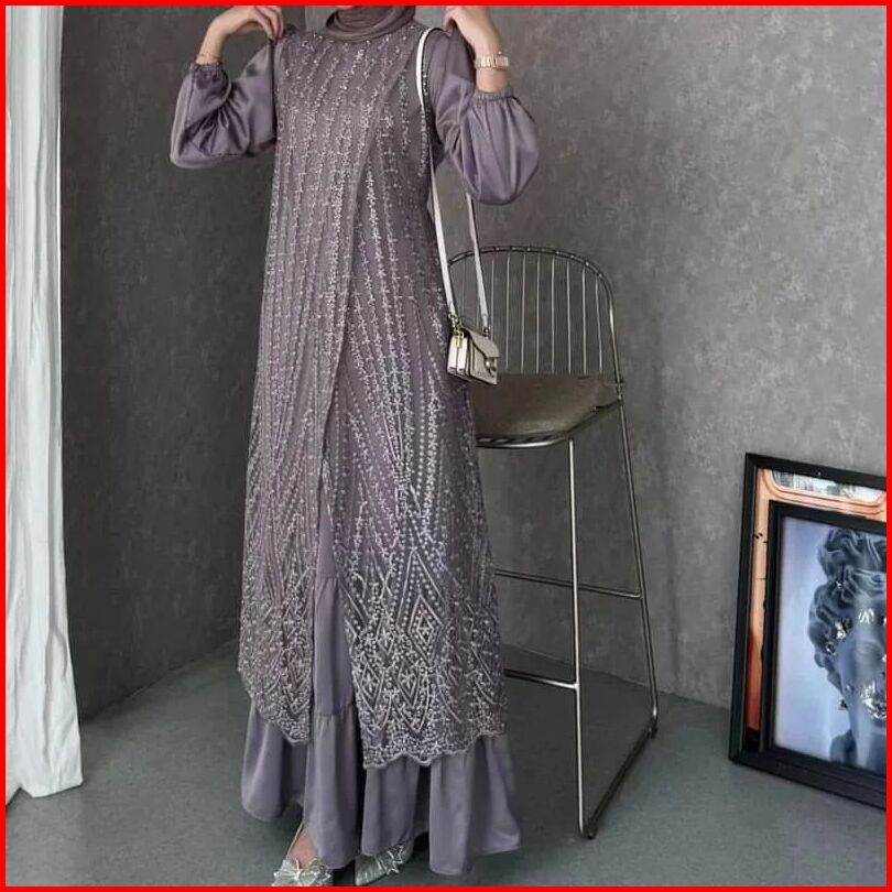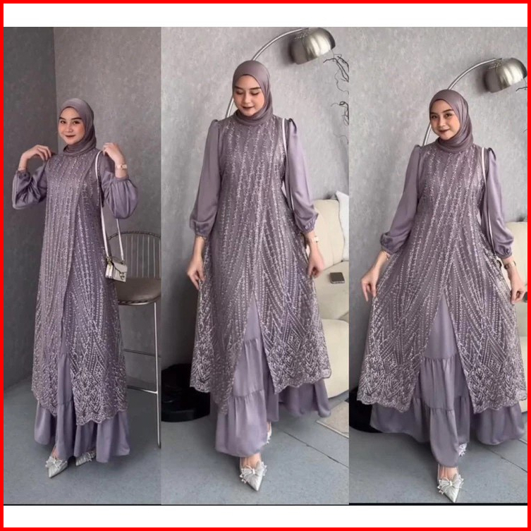 Fuji Dress Pesta Brukat Tille Premium Lebaran Gamis Pesta Mewah Bahan Maxmara Mix Brokat Timbul