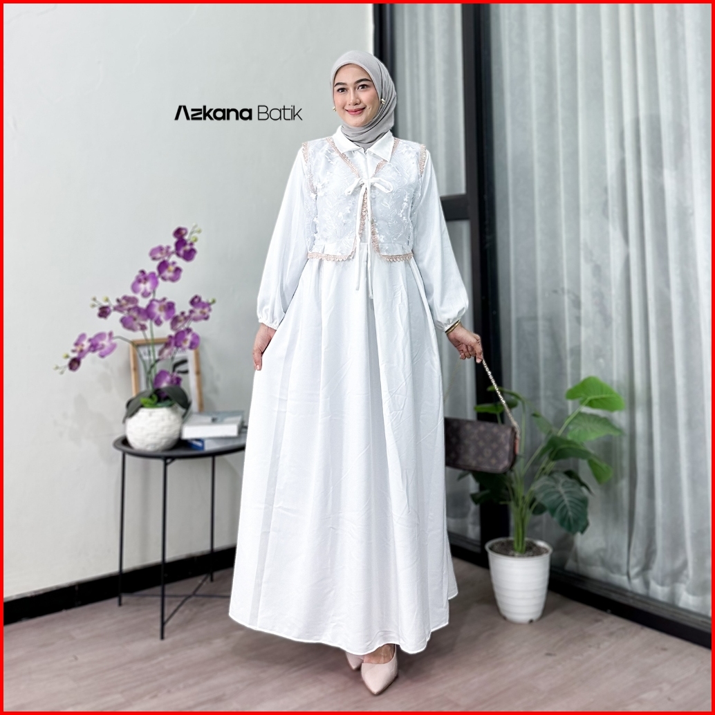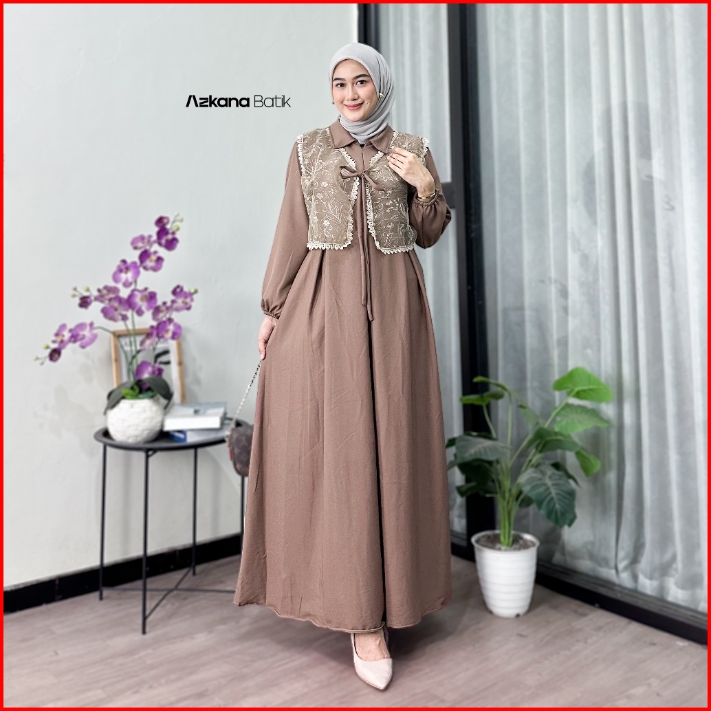 Azkana Batik - Kinar Gamis Burgundy Terbaru Dress Syakila Premium Mix Brukat Kombinasi Rendra Warna Gamis Pesta Wanita M
