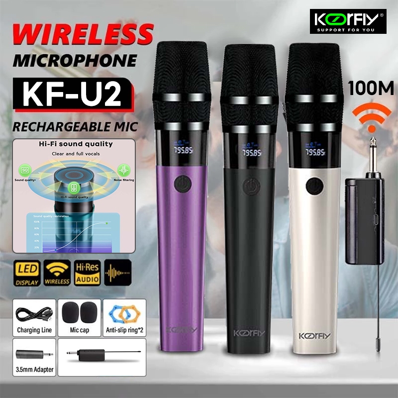 Rechargeable Mic Wireless Karaoke Tanpa Kabel KF-U2 MIC2 MIC1 UHF Mikrofon Karaoke Genggam LED Digital Ganda Nirkabel