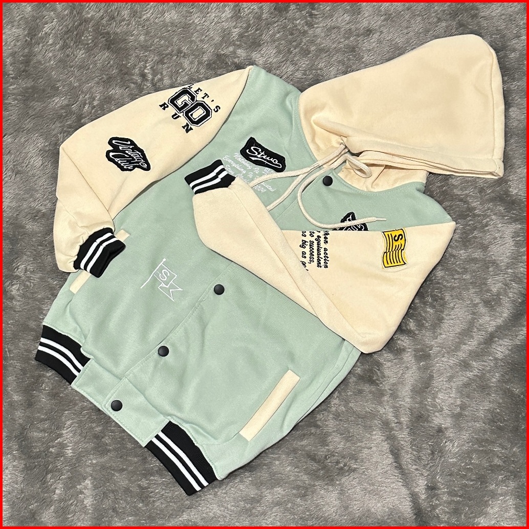 Jaket Varsity Anak Usia 3-13 Tahun Dan Dewasa Jaket Hoodie Baseball Pria Wanita Full Bordir Jaket Baseball Pria Jaket Ba