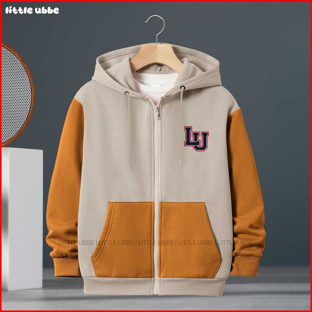 Jaket Zipper Kombinasi Anak Laki-laki Perempuan Fleece Tebal Simbol Lu Usia 3-13 Tahun Little Ubbe
