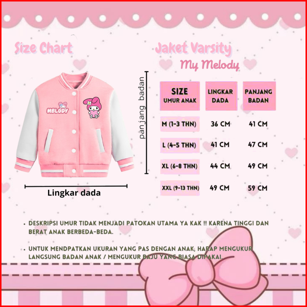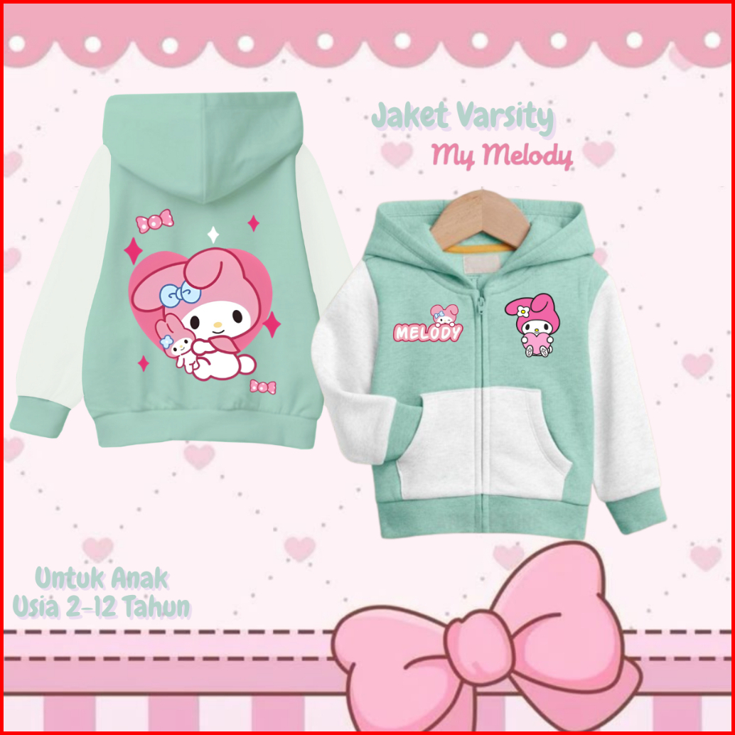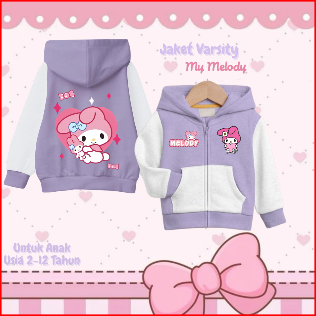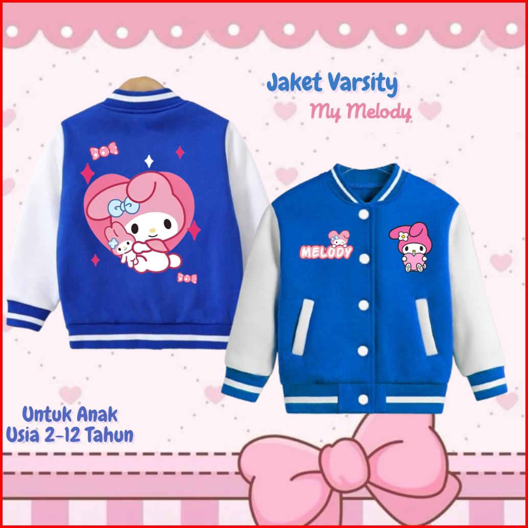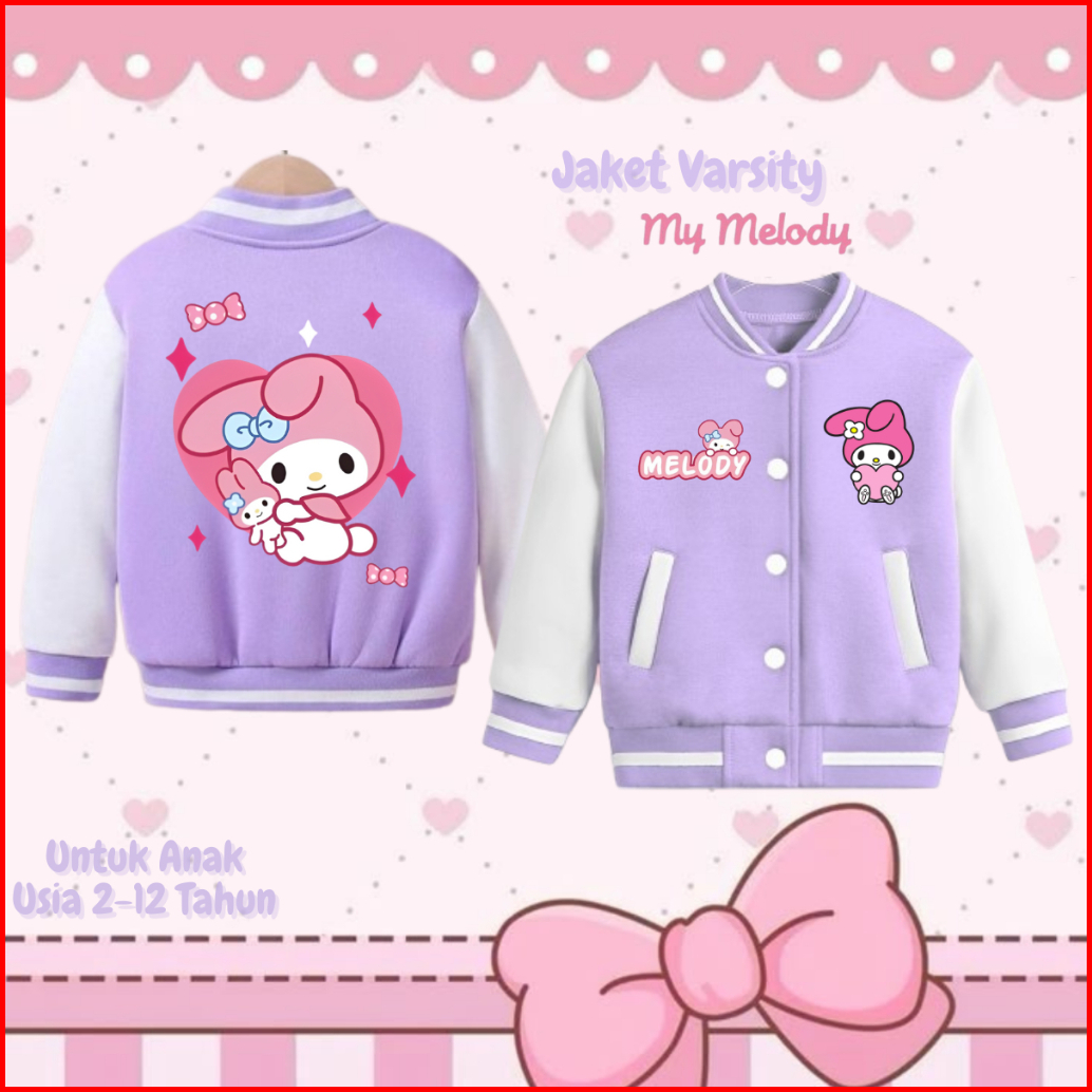 Jaket Anak Perempuan Usia 2-12 Tahun Karakter My Melody Jaket Varsity Zipper Terbaru