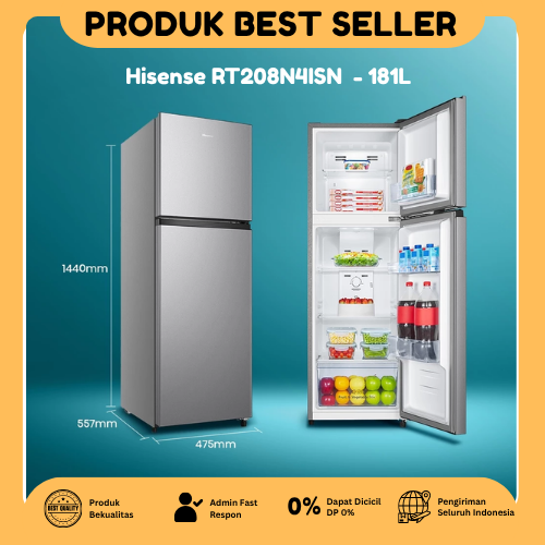 Hisense Kulkas 2 Pintu Kapasitas 181L /RT208N4ISN lemari es Jumbo terbaru tanpa bunga es 1 pintu mini tanpa dp Murah
