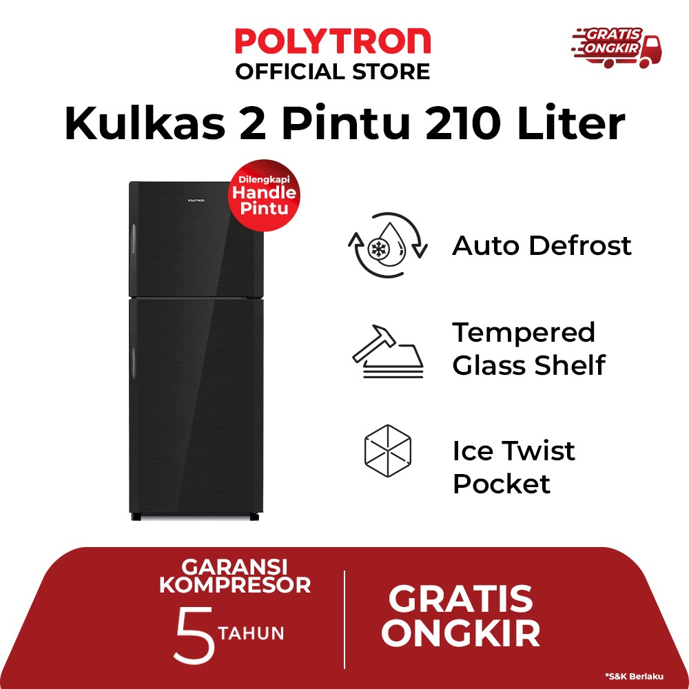 POLYTRON Kulkas 2 Pintu Belleza 210 liter PRM 21DMY Jumbo kulkas sayur Low Watt Tanpa Dp Official Kulkas 1 Pintu