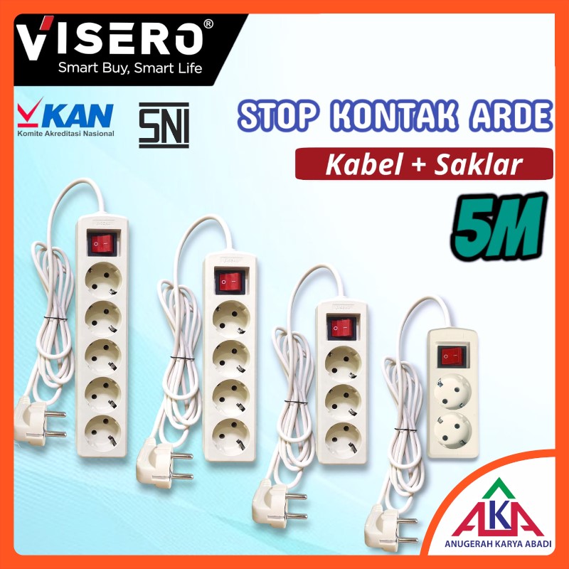 Terminal Colokan Listrik VISERO + Kabel Temabaga Kawat 2x1.5 30 50 5 Meter Stop Kontak Dinding Eterna Serabut Broco