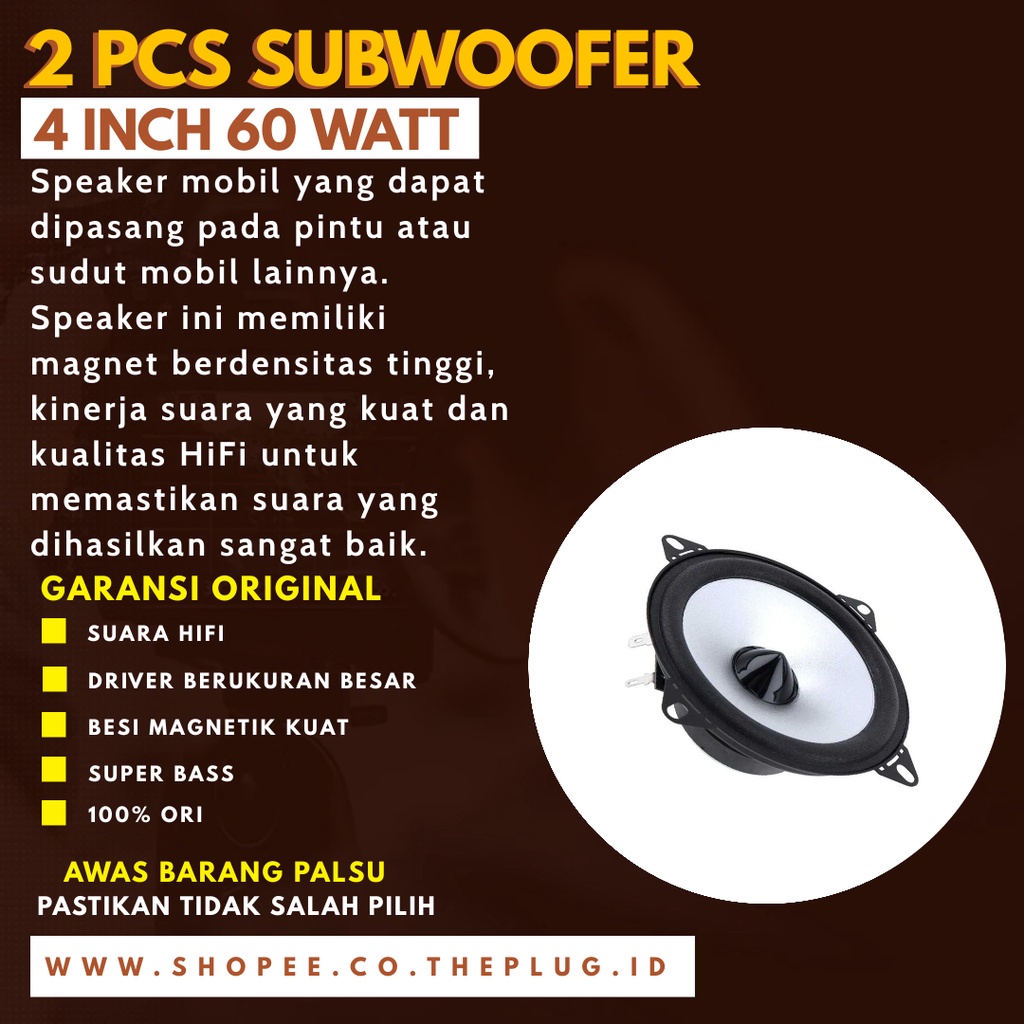 Speaker Subwoofer Spiker Super Bass Audio Mobil HiFi Ukuran 4 Inch 60W 2 PCS