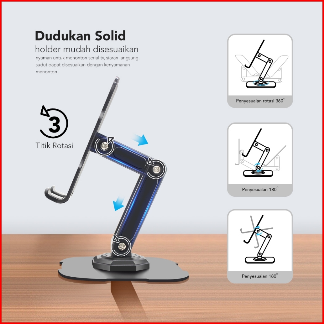 Amino Phone Holder Stand Foldable Dudukan Universal Tablet 360 Rotation Desktop Stand Di Lipat
