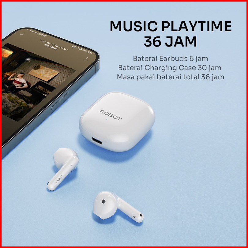 Robot Wireless Earphone Airbuds T60 Original Tws Bluetooth Garansi 1 Tahun