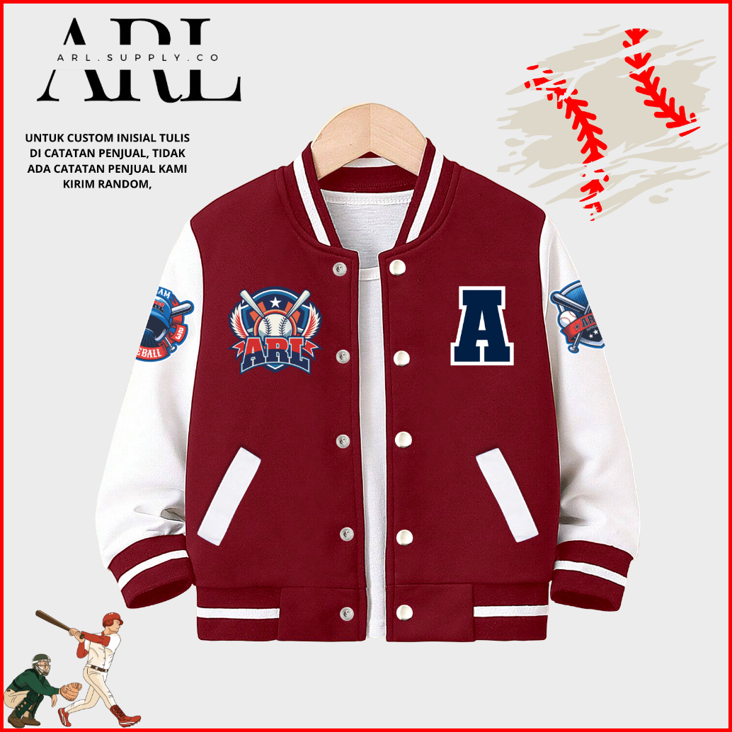 Arlsupply.co - Jaket Baseball Varsity Custom Huruf A-z Free Request Inisial Untuk Anak Laki-laki Perempuan Usia 2-12 Tah