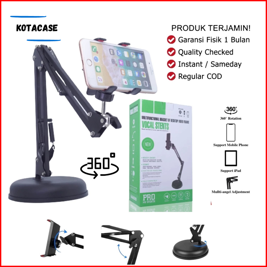 Stand Holder Hp Meja Broadcast Streaming Youtube Vlogger Multifungsi Bracket S77 Stand Hp Meja Fahrenheit Putar 360 Dera