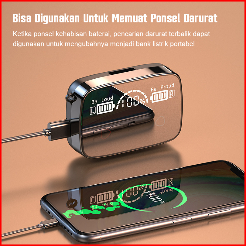 Jovitech Headset Bluetooth Tws Gaming 3in1 Flashlight Led Display Powerbank Cermin Hifi Stereo - Ep20