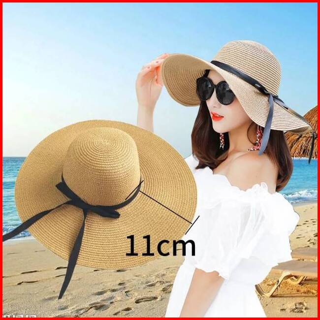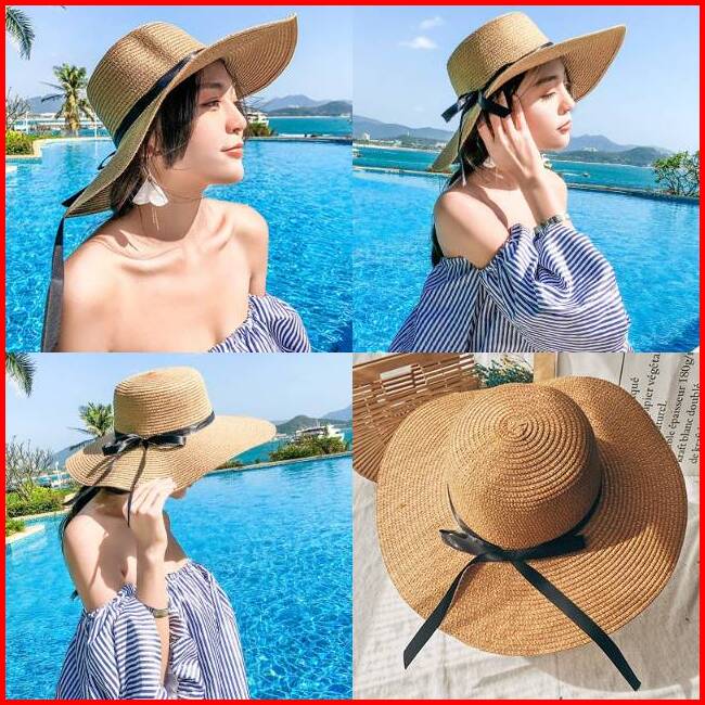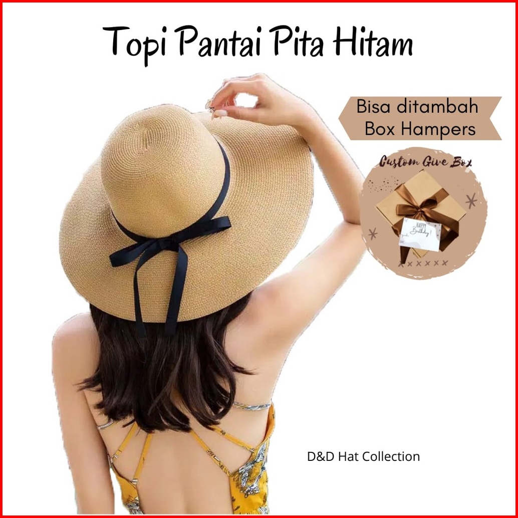 Topi Pantai Import Pita Tali Hitam Topi Fashion Wanita