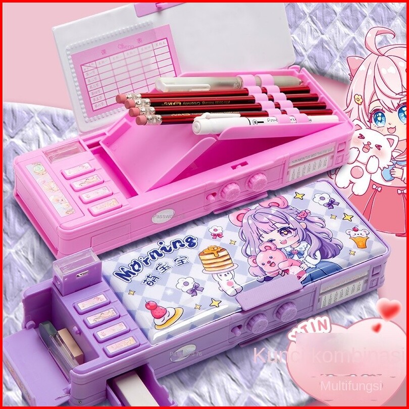 Kotak Alat Tulis Gadis Kotak Pensil Kata Sandi Multi-fungsi Wanita Yang Cocok Untuk Siswa Kelas 1-3 Tk