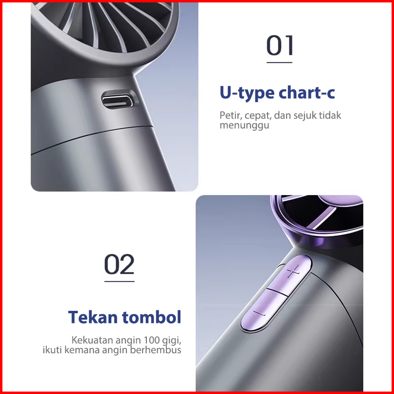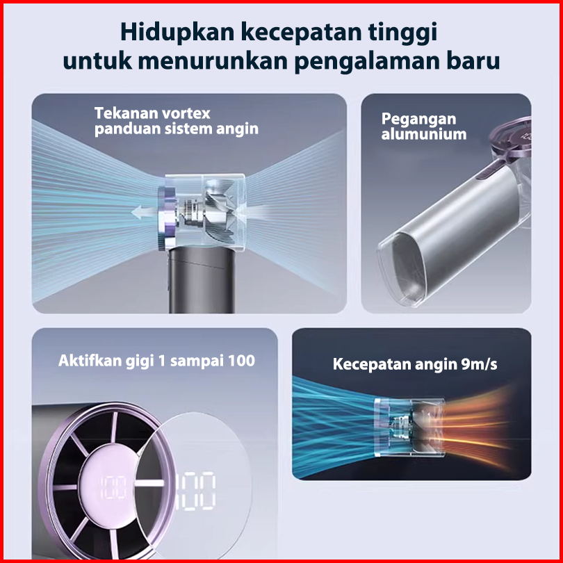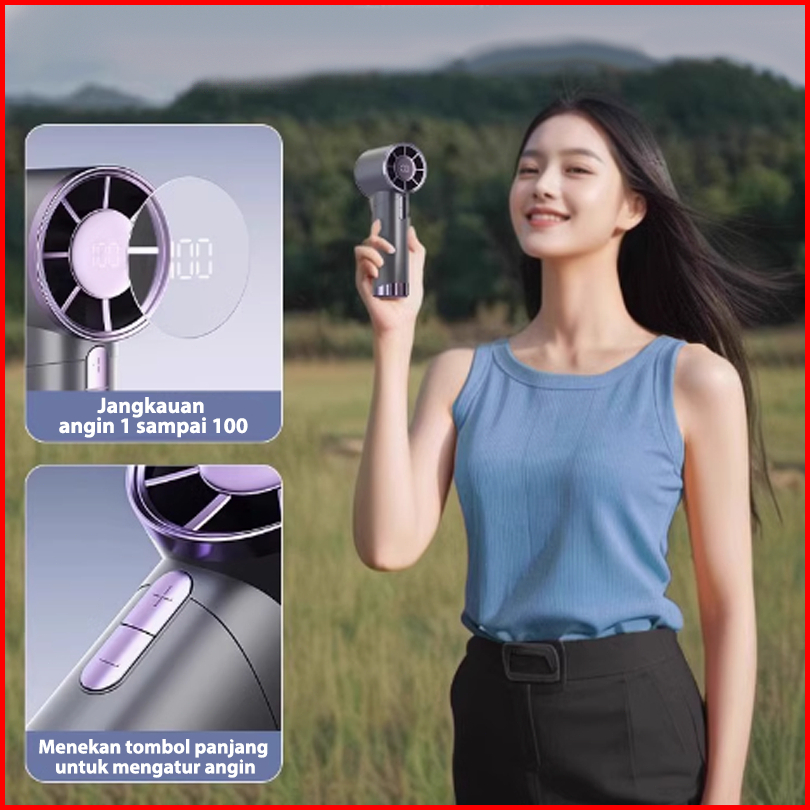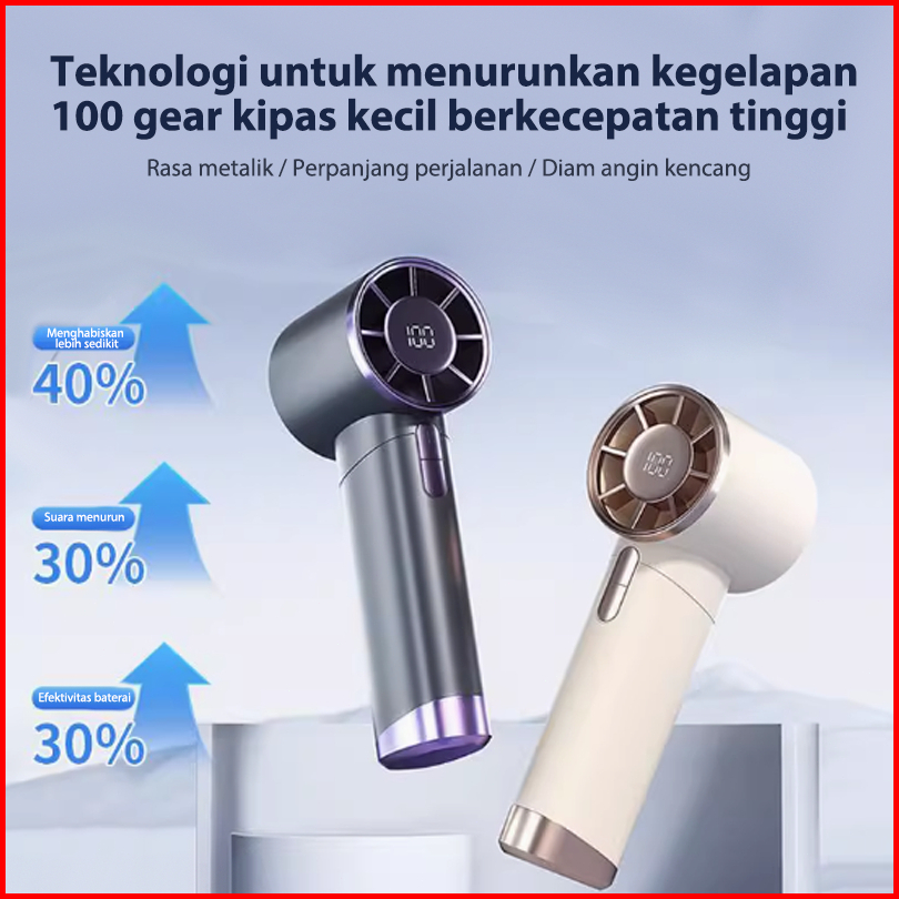 Kipas Angin Portable Turbo Mini Tangan Genggam Mini Fan Tampilan Daya Led 100 Gigi Kipas Genggam Portabel