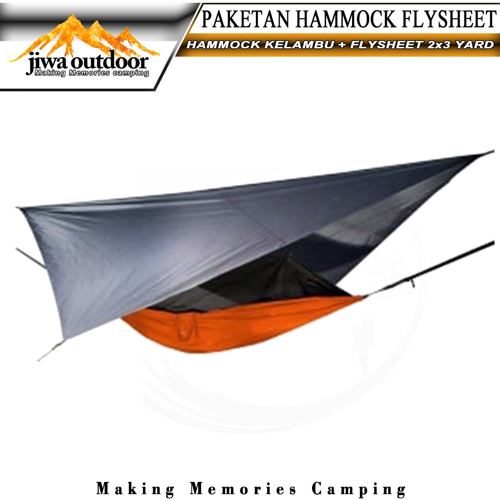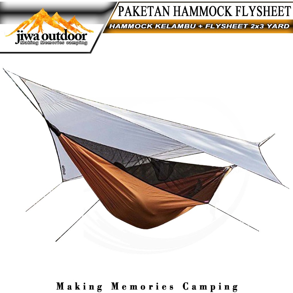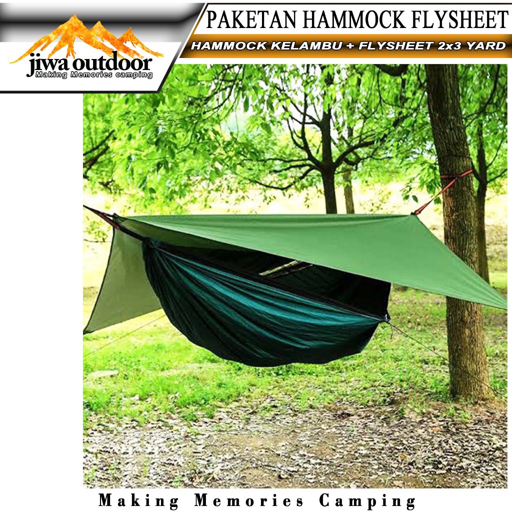 Paketan Hammock Kelambu + Flysheet Tenda Waterproof 2X3 Yard Paket Hemat Hammock Flysheet Camping