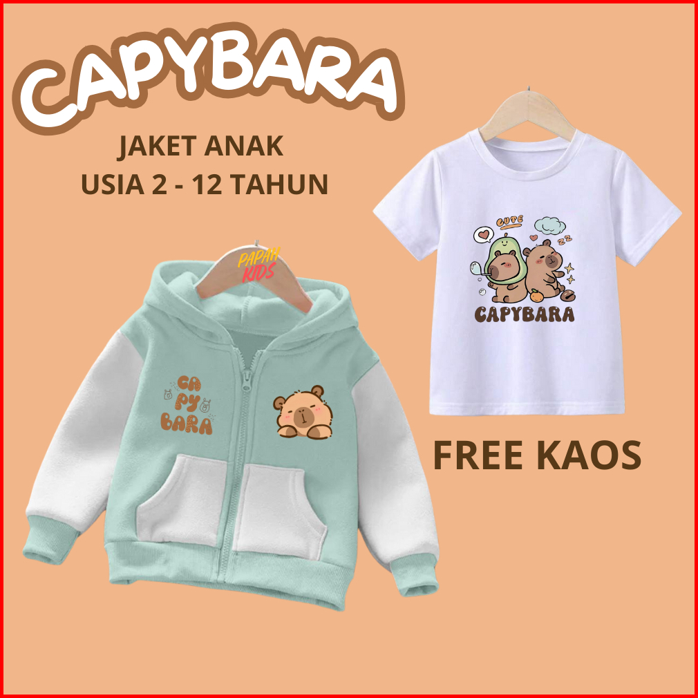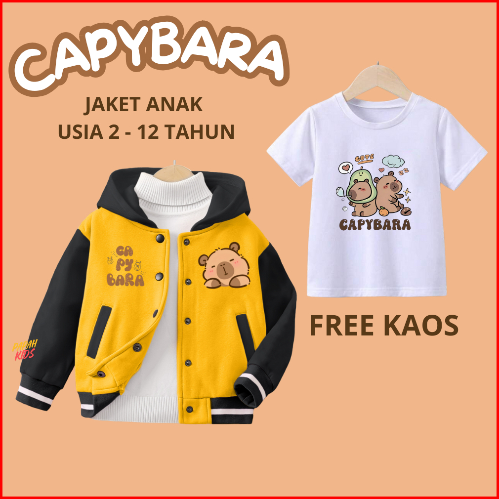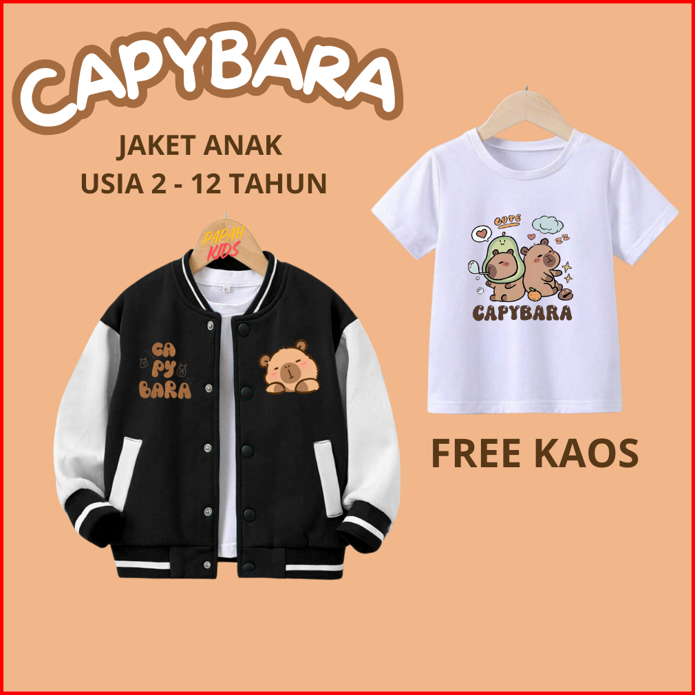 Jaket Anak Capybara Cute Laki-laki Perempuan Usia 2 - 12 Tahun Jaket Zipper Varsity Baseball