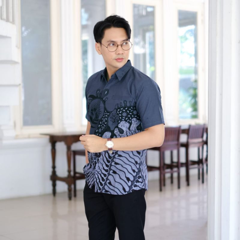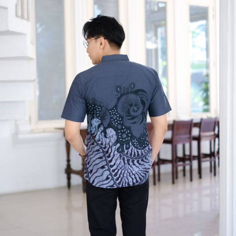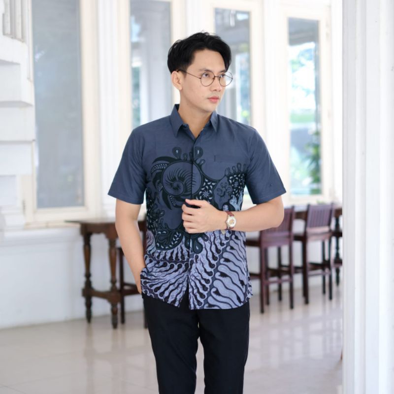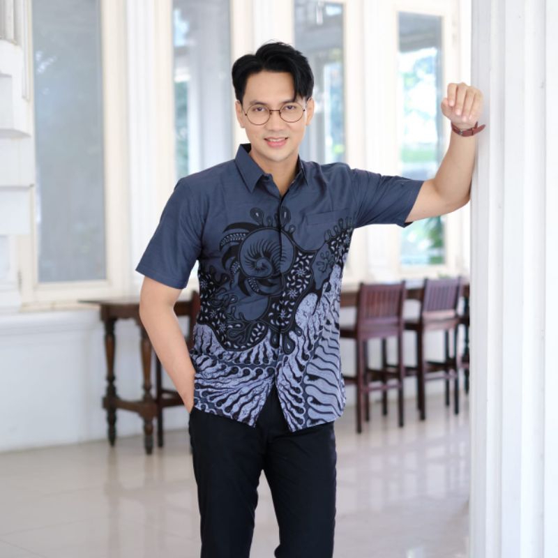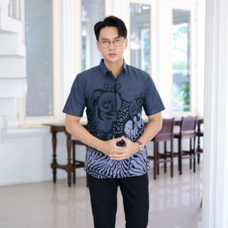 Warna Abu Kemeja Baju Batik Pria Slimfit Lengan Pendek Motif Rangkong Hem Batik Pria Jumbo