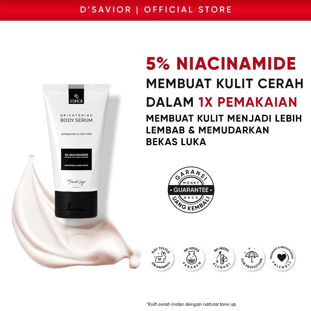 D'Savior Brightening Body Serum Niacinamide 5 PERSEN High Grade 50Ml D Savior Dsavior Travel Size Pelembab Pencerah Kulit Bada