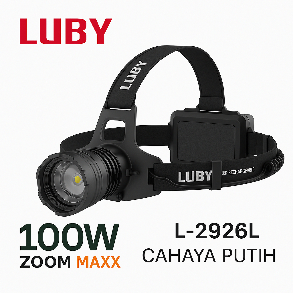 Luby L-2926 Senter Kepala Zoom Maxx Ultra Laser Led Led Rechargeable Headlight 100 Watt - Cahaya Putih & Kuning