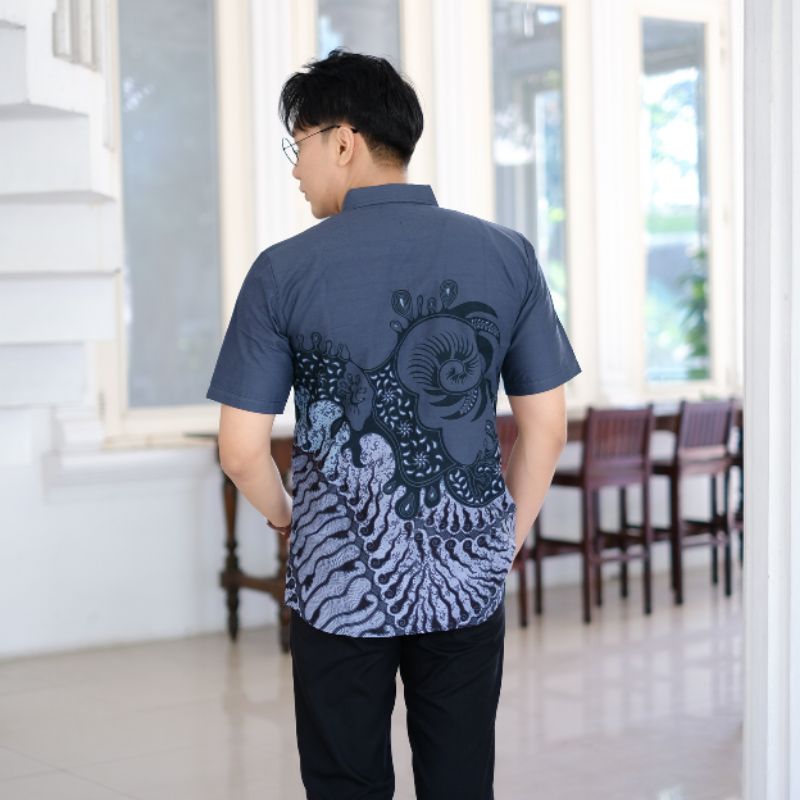 Kemeja Batik Pria Slimfit Lengan Pendek Lapis Furing Motif Rangkong Baju Batik Pria Hem Batik Pria Jumbo