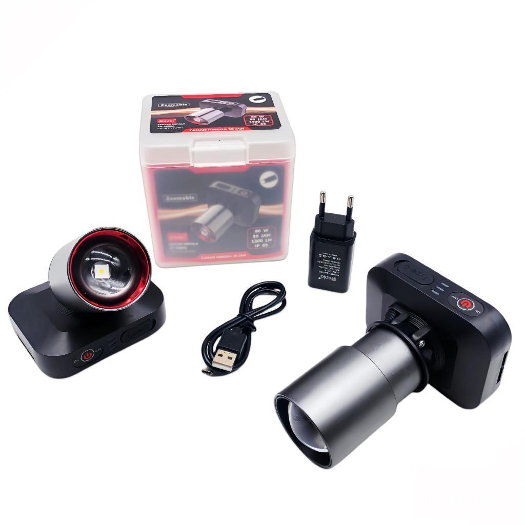 Senter Kepala Led Zoom Laser 80 Watt 1300 Lumen Aoki Ak-3695A / Ak-3596K Pro Cahaya Putih & Kuning Super Terang Batre