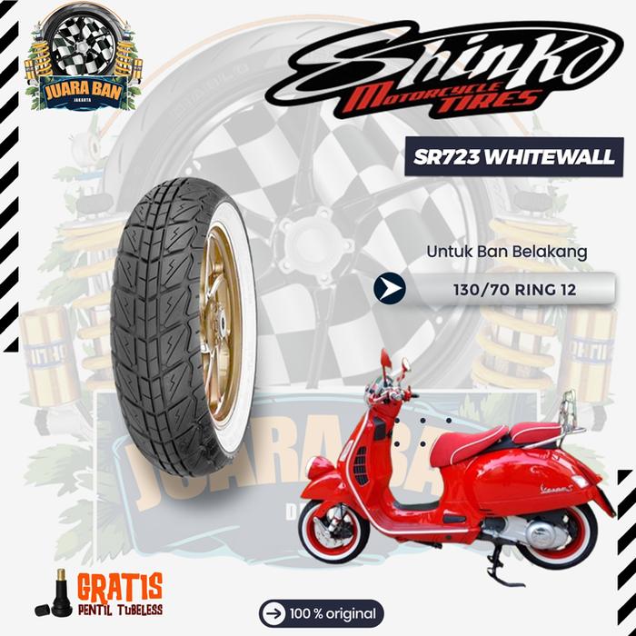 Sepasang / Satuan Ban VESPA MATIC - SHINKO SR723 White Wall Ukuran 120/70-12 & 130/70-12 RING 12