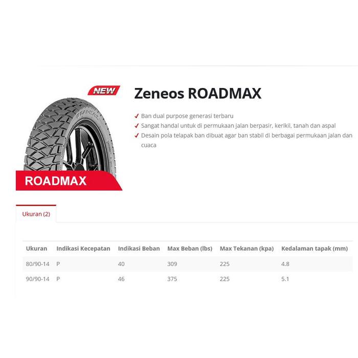 Zeneos ROADMAX 110 90 12 Ban luar motor Tubeless Dual Purpose Semi Trail scoopy ring 12