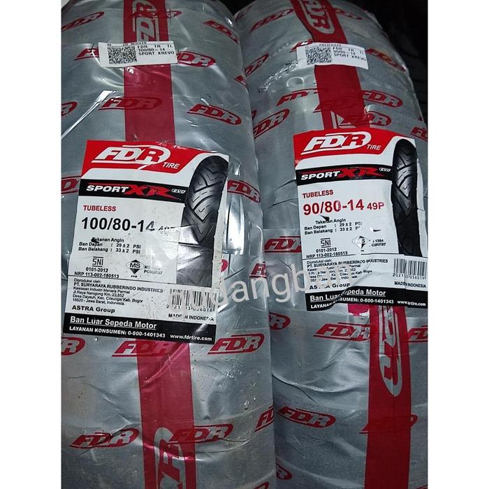Paket Ban luar FDR 90 80 14 dan 100 80 14 Sport XR EVO Tubeless motor matic vario beat FREE Original