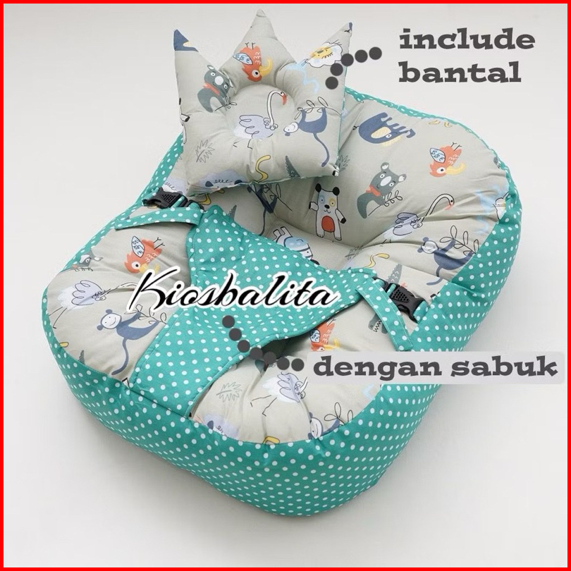 Kiosbalitaid-premium Kasur Bayi Multifungsi Sofa Bayi Dengan Gesper Safety Belt Premium Tebal Free Bantal Peyang Crown