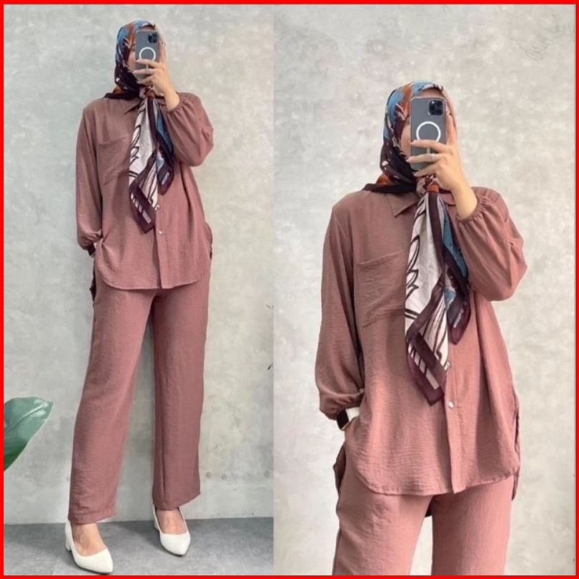 Setelan Amanda Busui Cringkle Airflow One Set Kemeja Amanda Crinkle