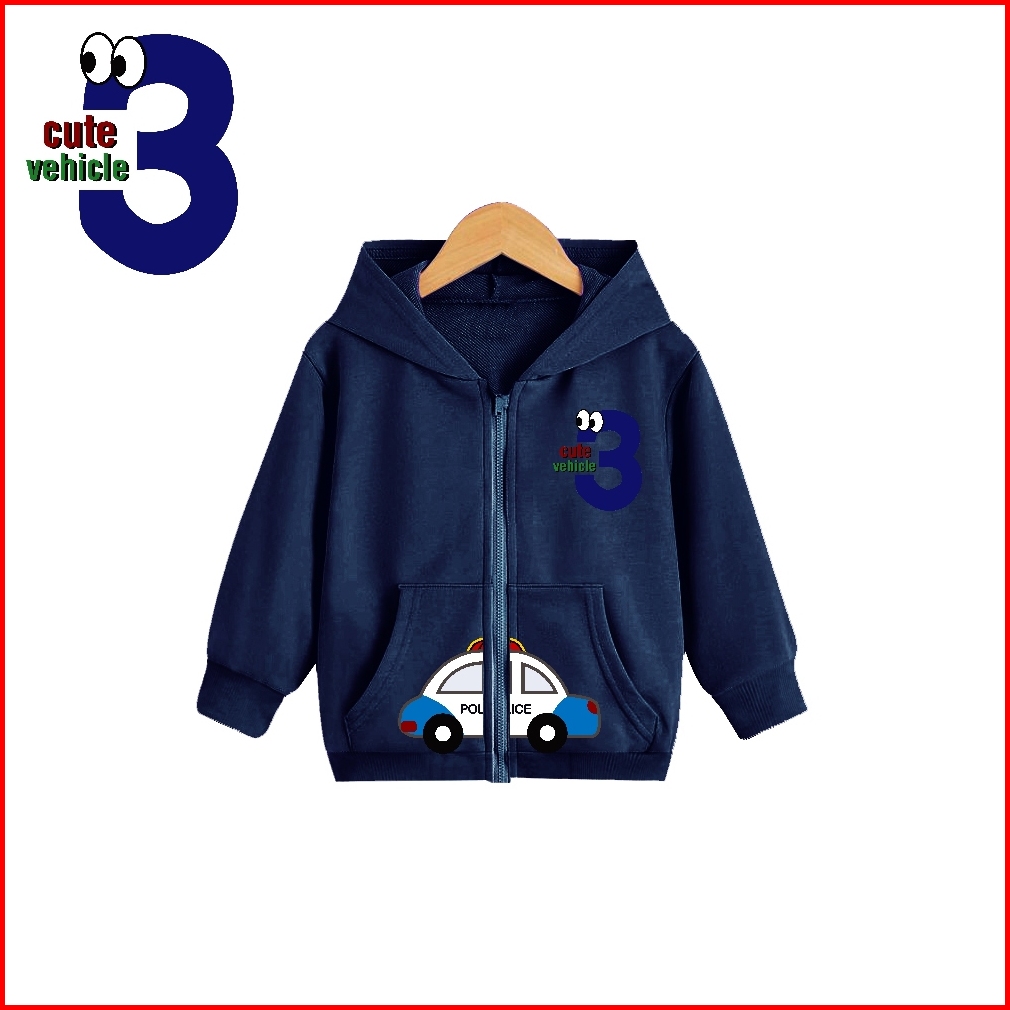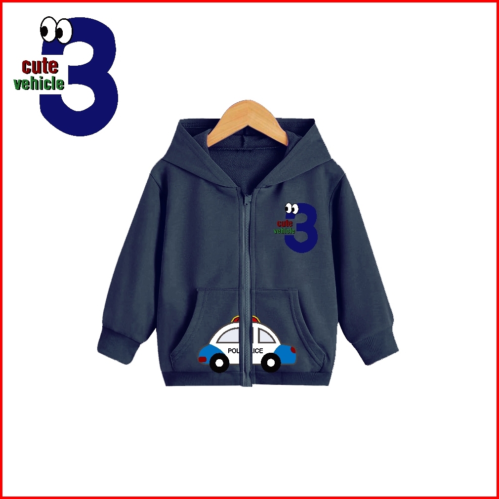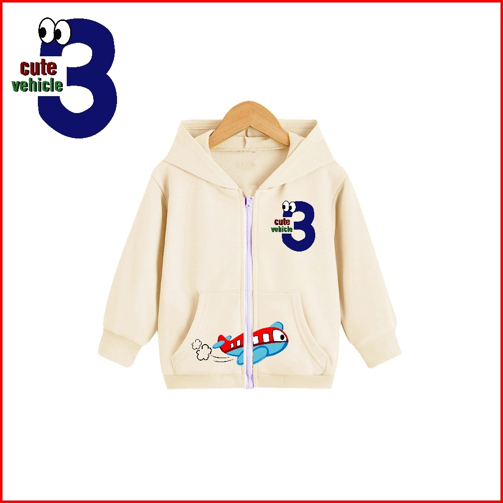 Hoodie Zipper Basic Anak Cewek Hoodie Cute Vehichle Usia 1-6 Thn