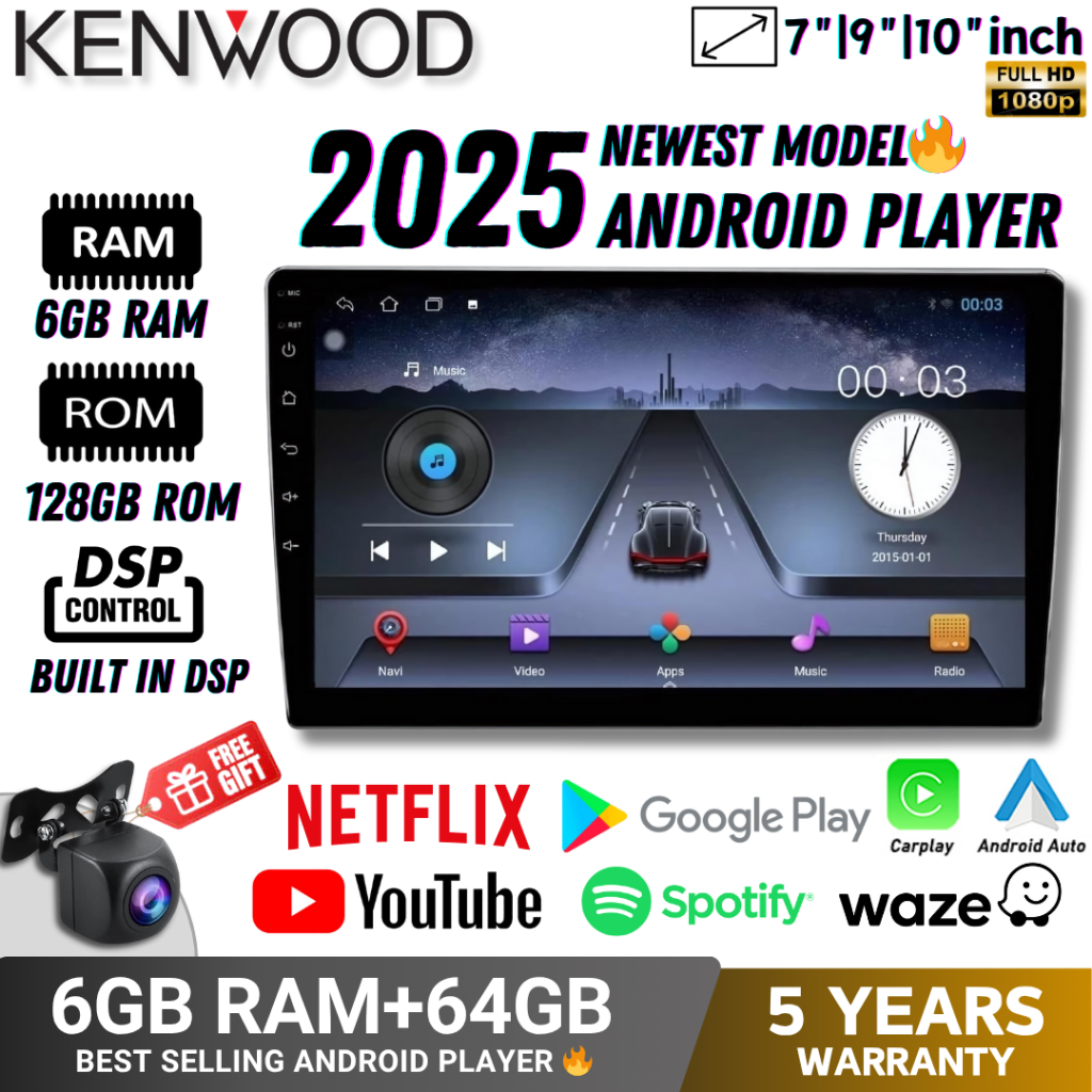 6GB RAM+64GB ROM Kenwood 2025 Newest Android Player 9"10 inch Quad Core Car Multimedia MP5 Player