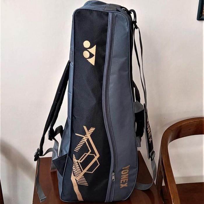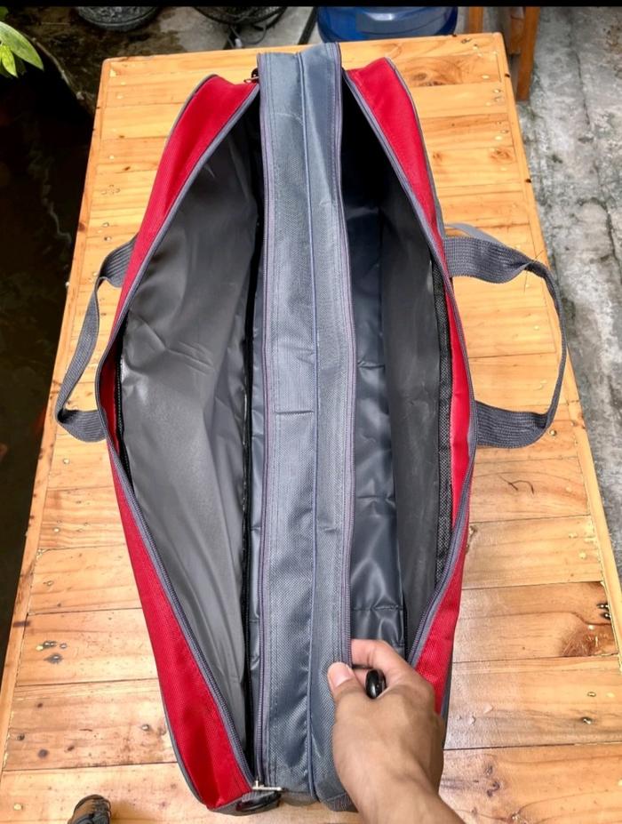 TAS RAKET BULU TANGKIS BADMINTON 2 RUANG MODEL RANGSEL SELEMPANG TENTENG BAHAN 1680 PREMIUM QUALITY ANTI AIR BAG RANSEL ABU - MERAH ABU