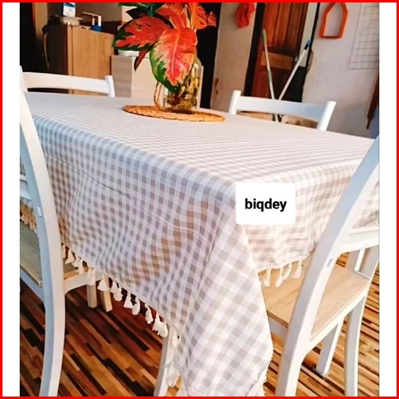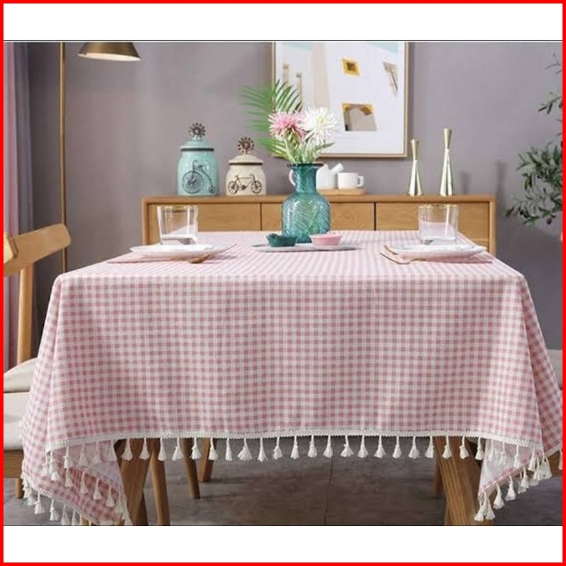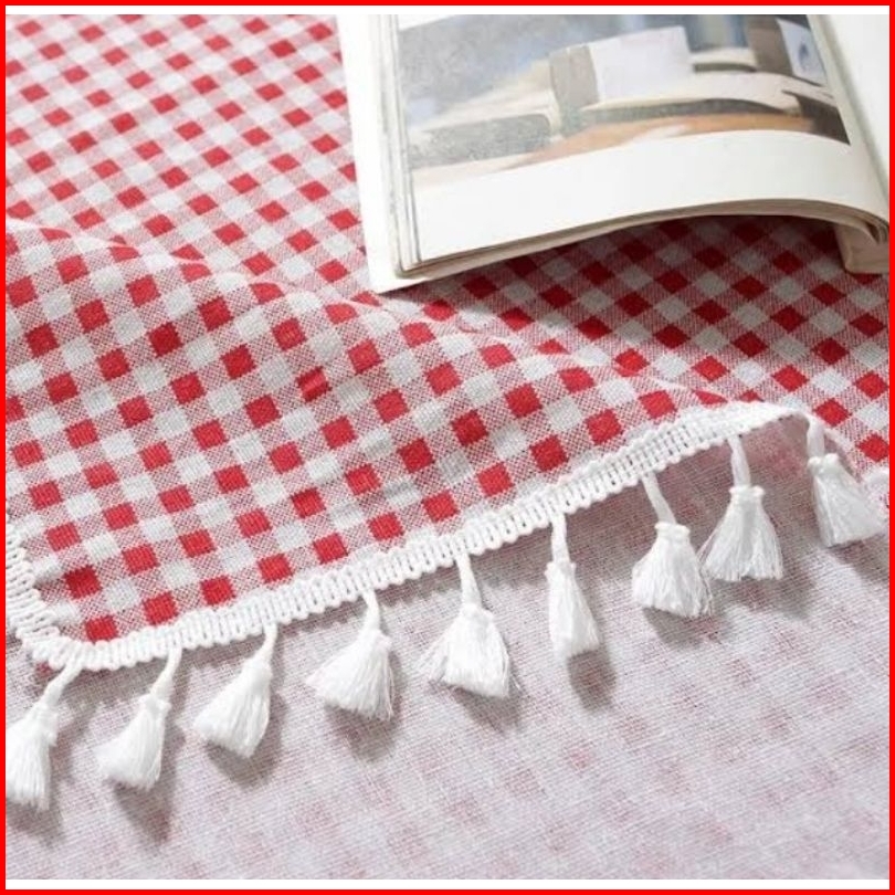Terbaru Taplak Meja Makan Rumbai Motif Kotak Kotak 1cm