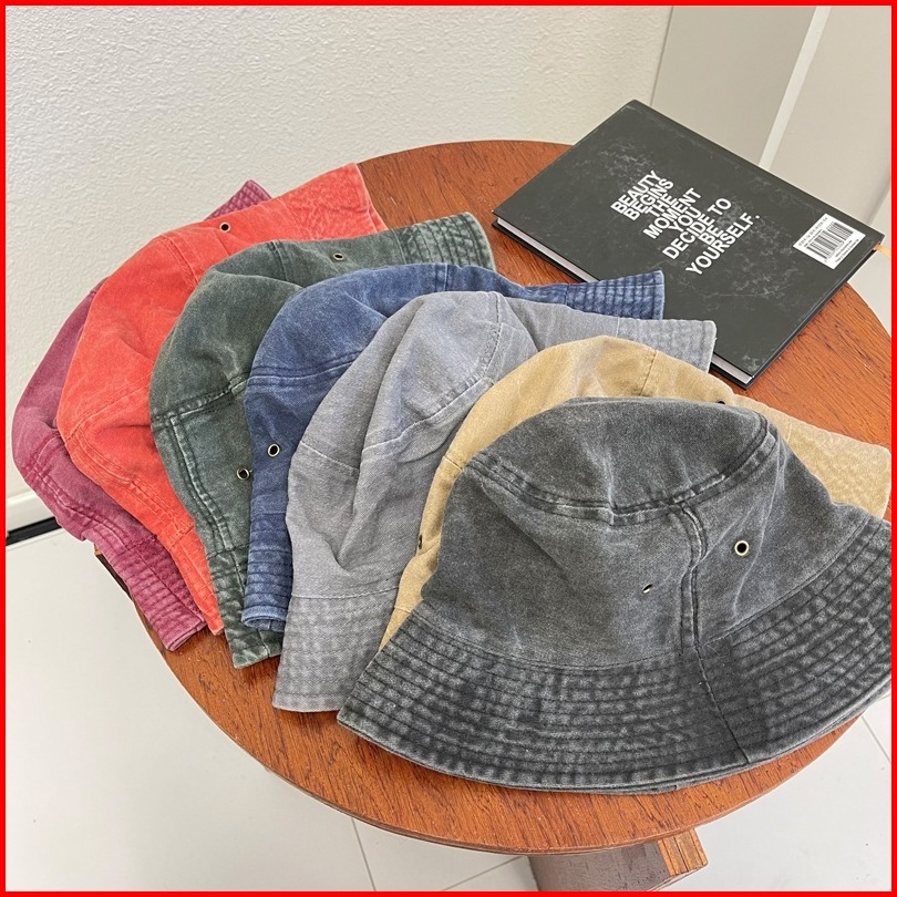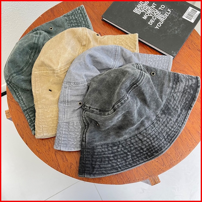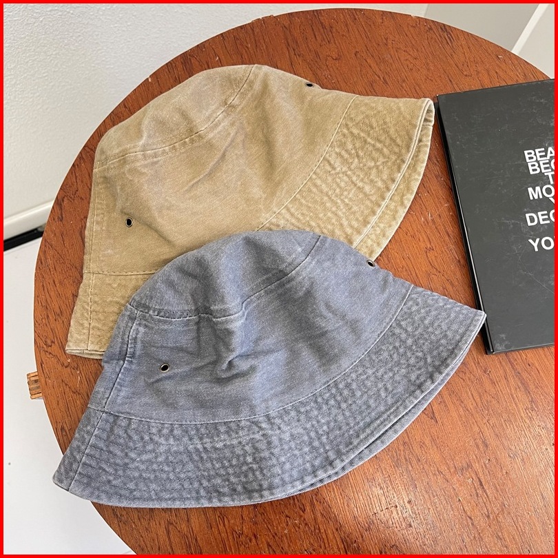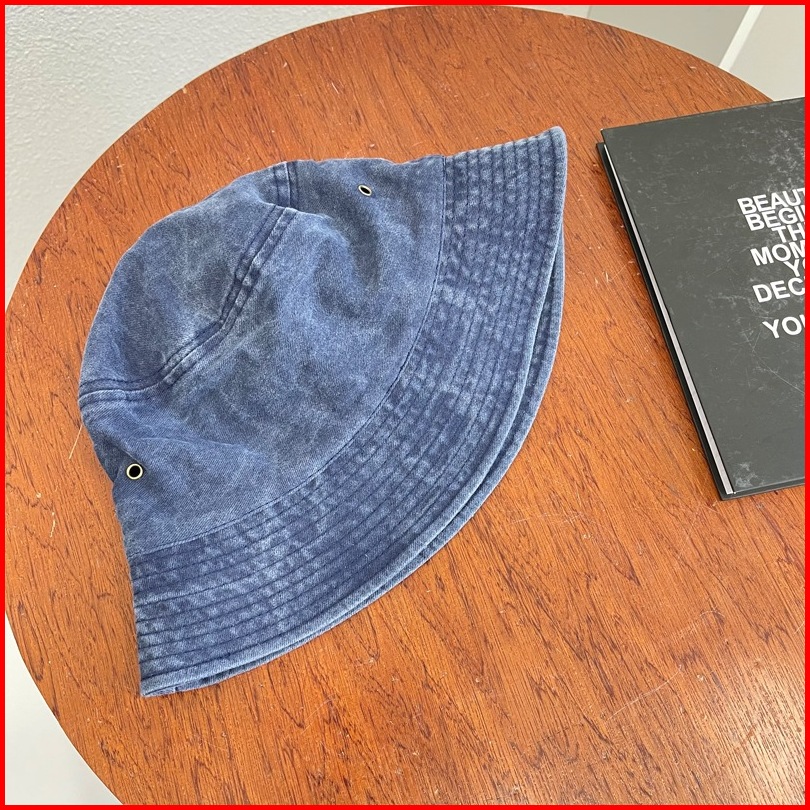 Topi Bucket Retro Washed Denim Topi Summer Topi Bali Pantai Topi Gunung Camping