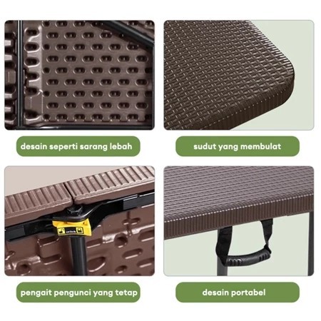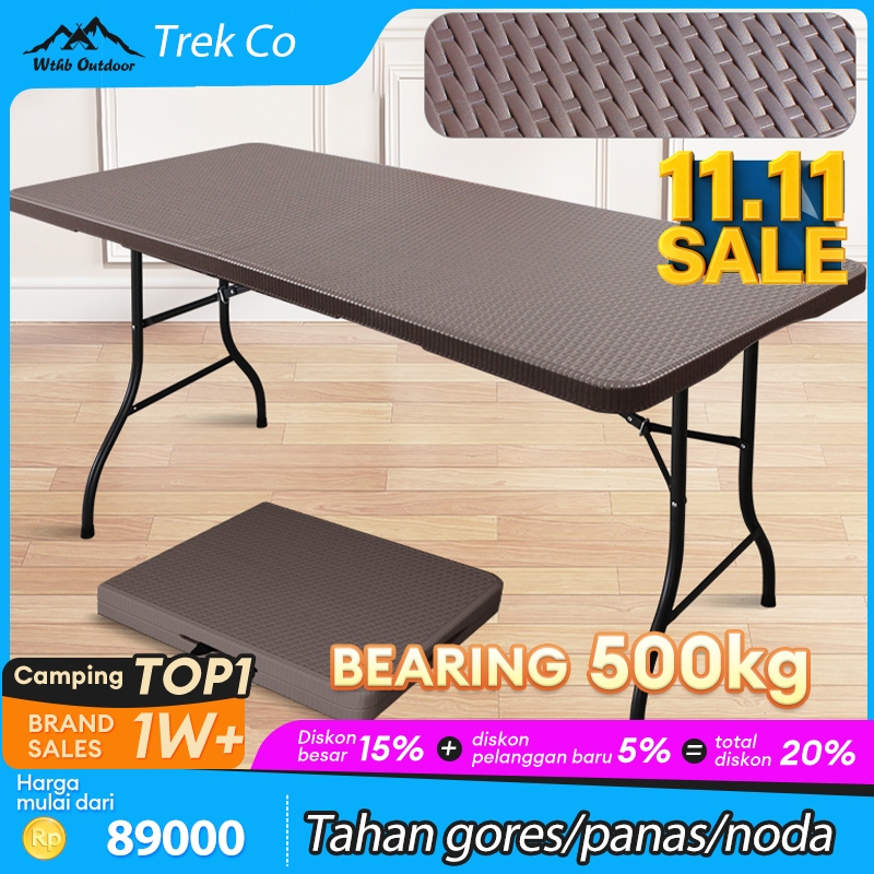 Meja lipat portable cokelat Meja lipat jualan Penebalan 1.2/1.5/1.8m meja lipat plastik meja lipat Outdoor Indoor