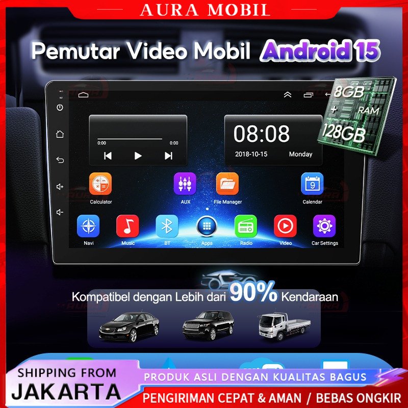 Head Unit Android 15 8GB+128GB 7/9/10 Inch 2Din Wifi GPS Wireless Carplay Bluetooth Universal -Aura Mobil