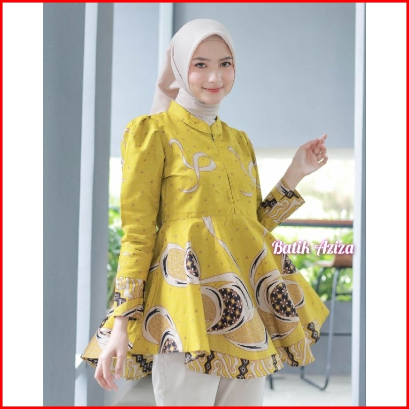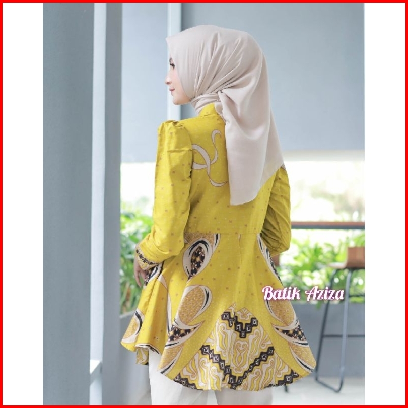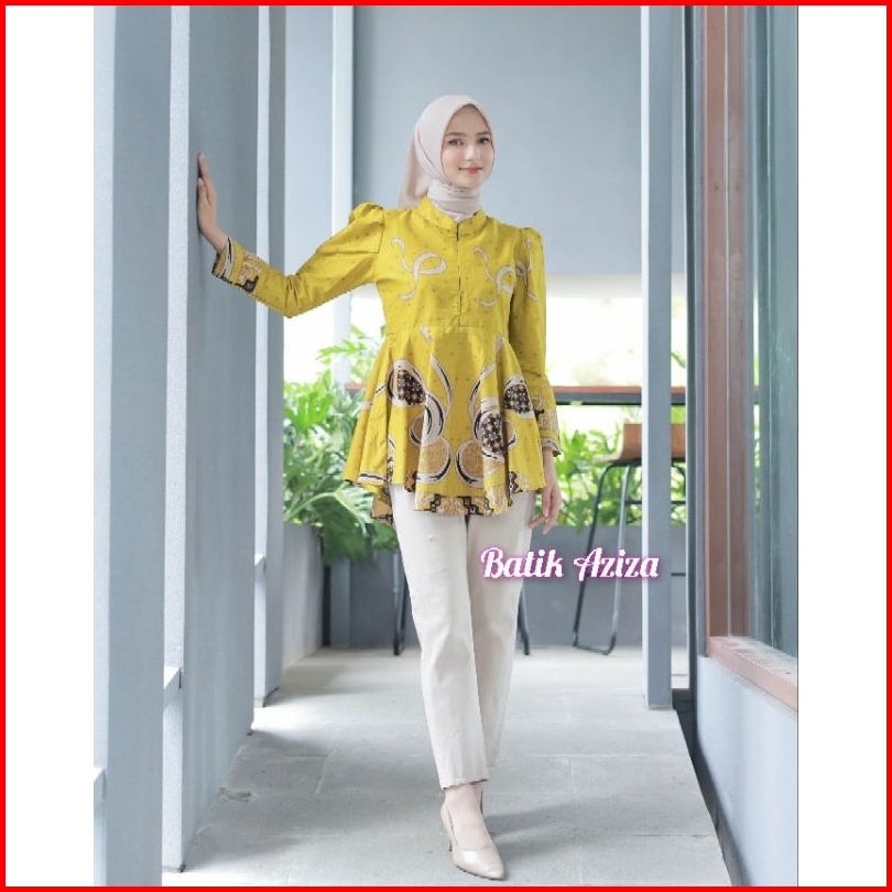 Batik Wanita Modern Atasan Batik Wanita Puffy Shoulder Peplum Payung Lebar Blus Aurora Kain Katun By Batik Aziza