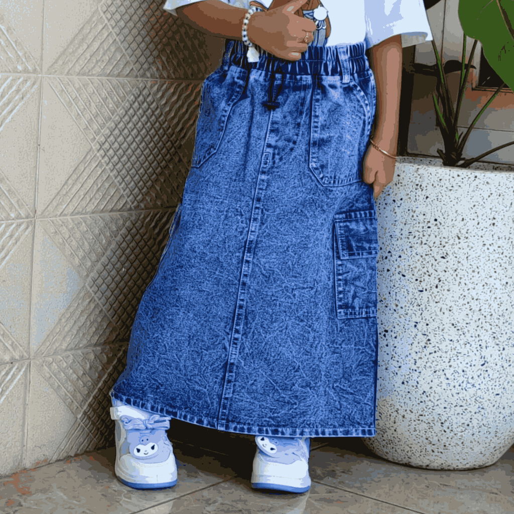 Rok Span Anak Perempuan Kargo Jeans Usia 2-9 Tahun