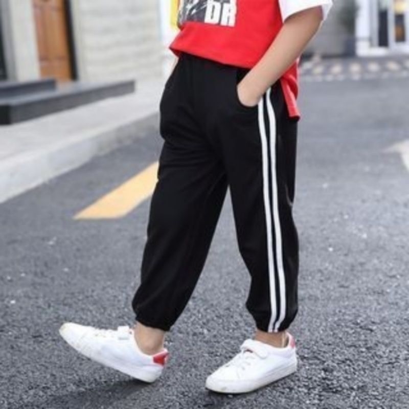 Celana Training Panjang Anak Dan Remaja Polos List Putih Unisex / Celana Olahraga Training Pants Polos