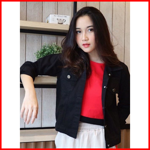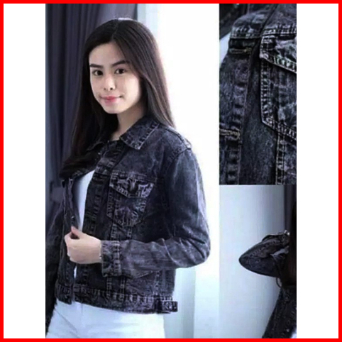 Ratu Fashion Jaket Jeans Snow Black Wanita Jaket Jeans Snow Wash Acid
