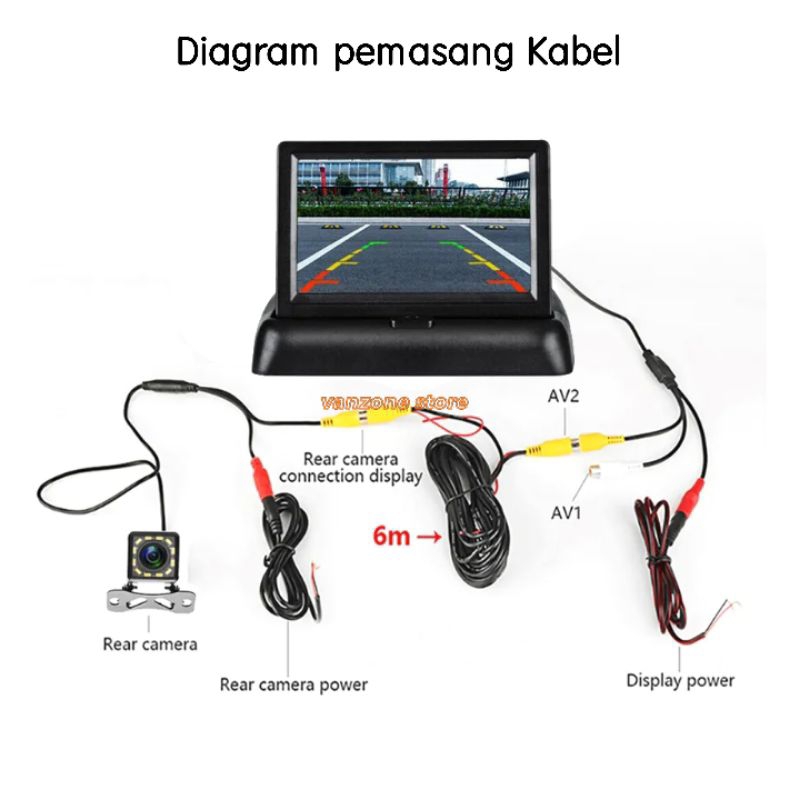 VANZONE Monitor Parkir Kamera Mundur Mobil Lipat Layar LCD Dashboard TFT 4.3" Kamera Parkir Mobil
